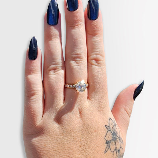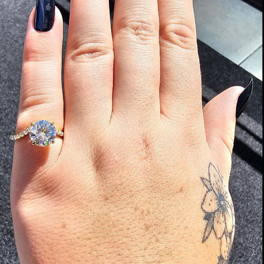 Solid gold moissanite rings are exquisite and luxurious pieces of fine jewellery that feature both high-quality moissanites and a solid gold band. Symbolizing love and commitment. Whether chosen for an engagement ring, wedding band, or as a meaningful gift, these rings are timeless treasures that hold sentimental and lifelong value.